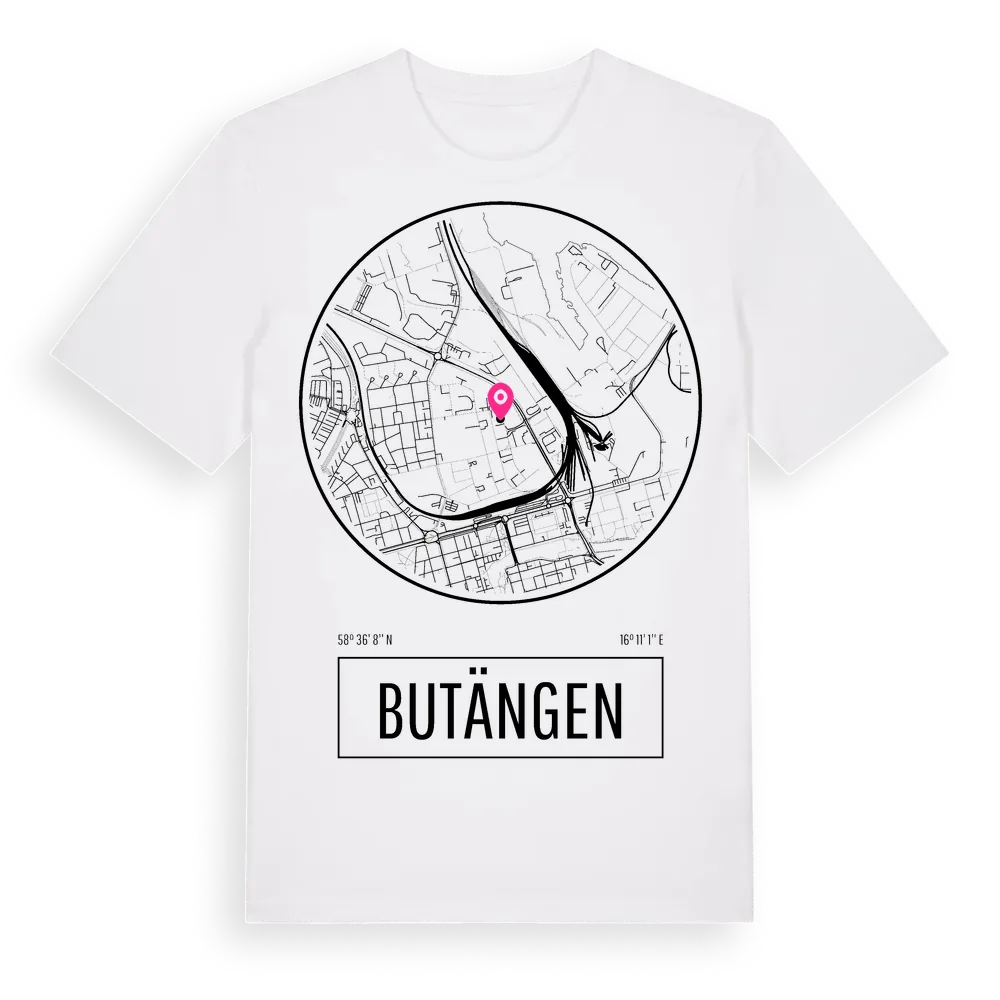 Butängen t-shirt är inspirerad av Butängen i Östergötlands län, Sverige. Tröjan är designad för dig som har en speciell koppling till platsen – oavsett om du bor här, har rötterna här eller bara älskar Butängen.