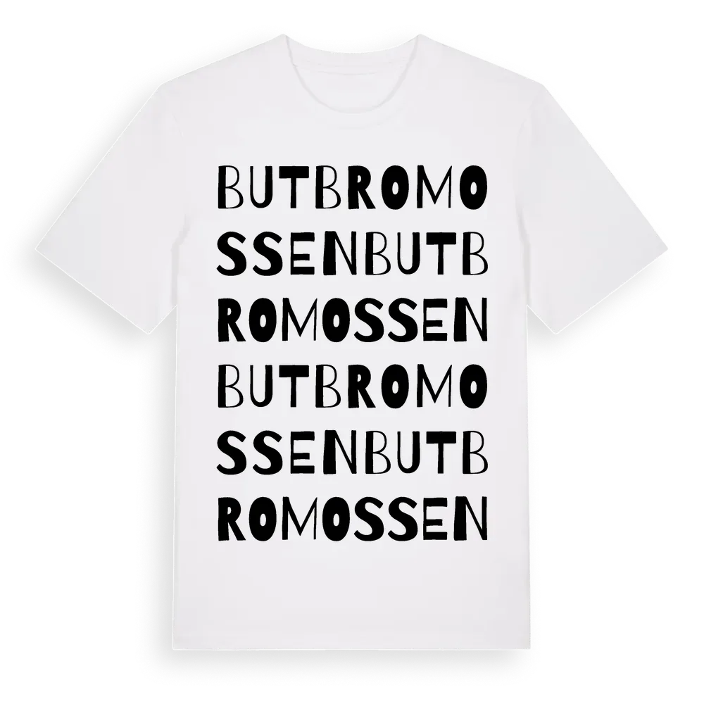 Butbromossen ordlek t-shirt är inspirerad av Butbromossen i Östergötlands län, Sverige. Tröjan är designad för dig som har en speciell koppling till platsen – oavsett om du bor här, har rötterna här eller bara älskar Butbromossen.