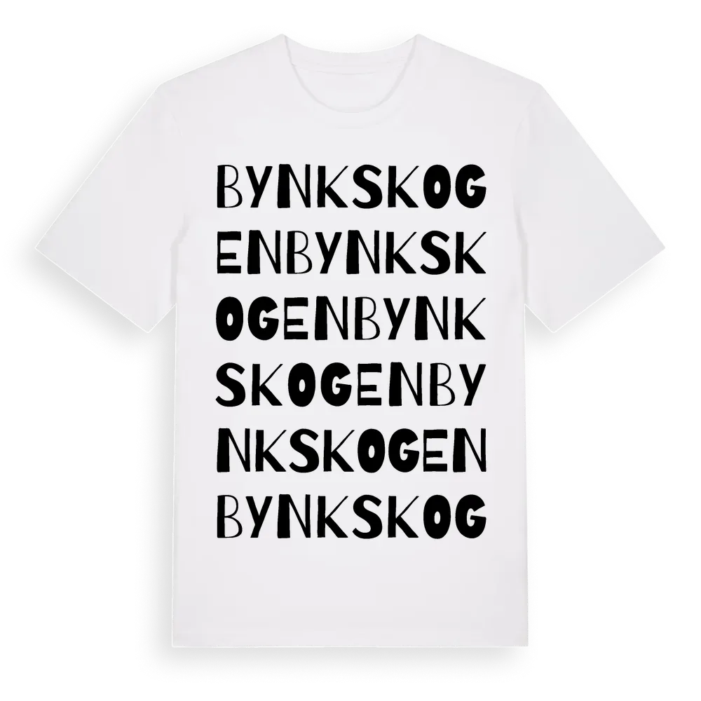 Bynkskogen ordlek t-shirt är inspirerad av Bynkskogen i Östergötlands län, Sverige. Tröjan är designad för dig som har en speciell koppling till platsen – oavsett om du bor här, har rötterna här eller bara älskar Bynkskogen.