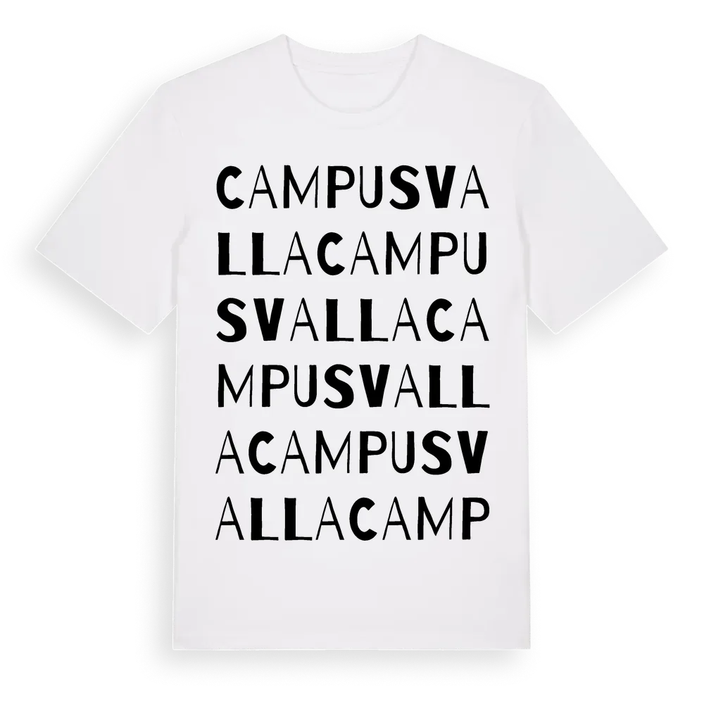 En ordlek byggd på Campus Vallas namn. Subtilt och klurig – ett motiv som bara de som verkligen känner platsen fullt ut förstår. Premium bomull, unisex – från Campus Valla i Östergötlands län.