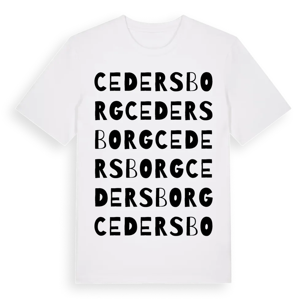 Cedersborg ordlek t-shirt är inspirerad av Cedersborg i Östergötlands län, Sverige. Tröjan är designad för dig som har en speciell koppling till platsen – oavsett om du bor här, har rötterna här eller bara älskar Cedersborg.