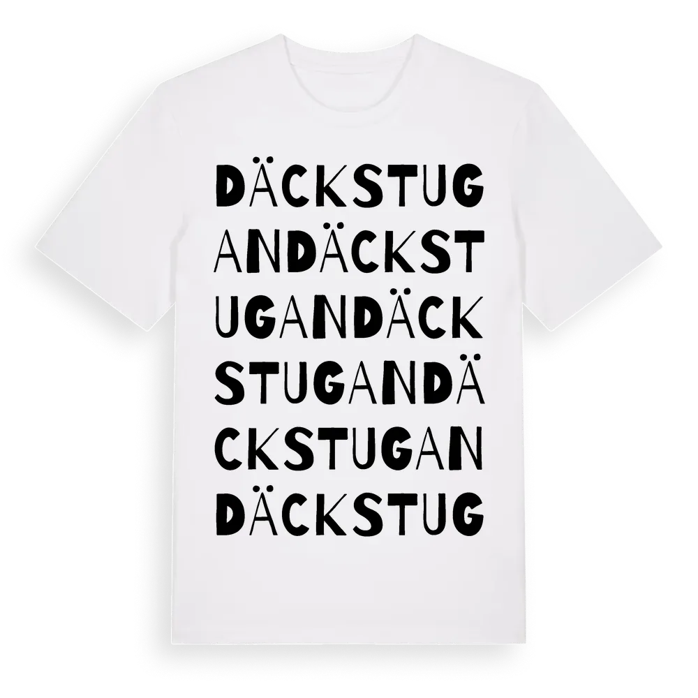 Däckstugan ordlek t-shirt är inspirerad av Däckstugan i Östergötlands län, Sverige. Tröjan är designad för dig som har en speciell koppling till platsen – oavsett om du bor här, har rötterna här eller bara älskar Däckstugan.