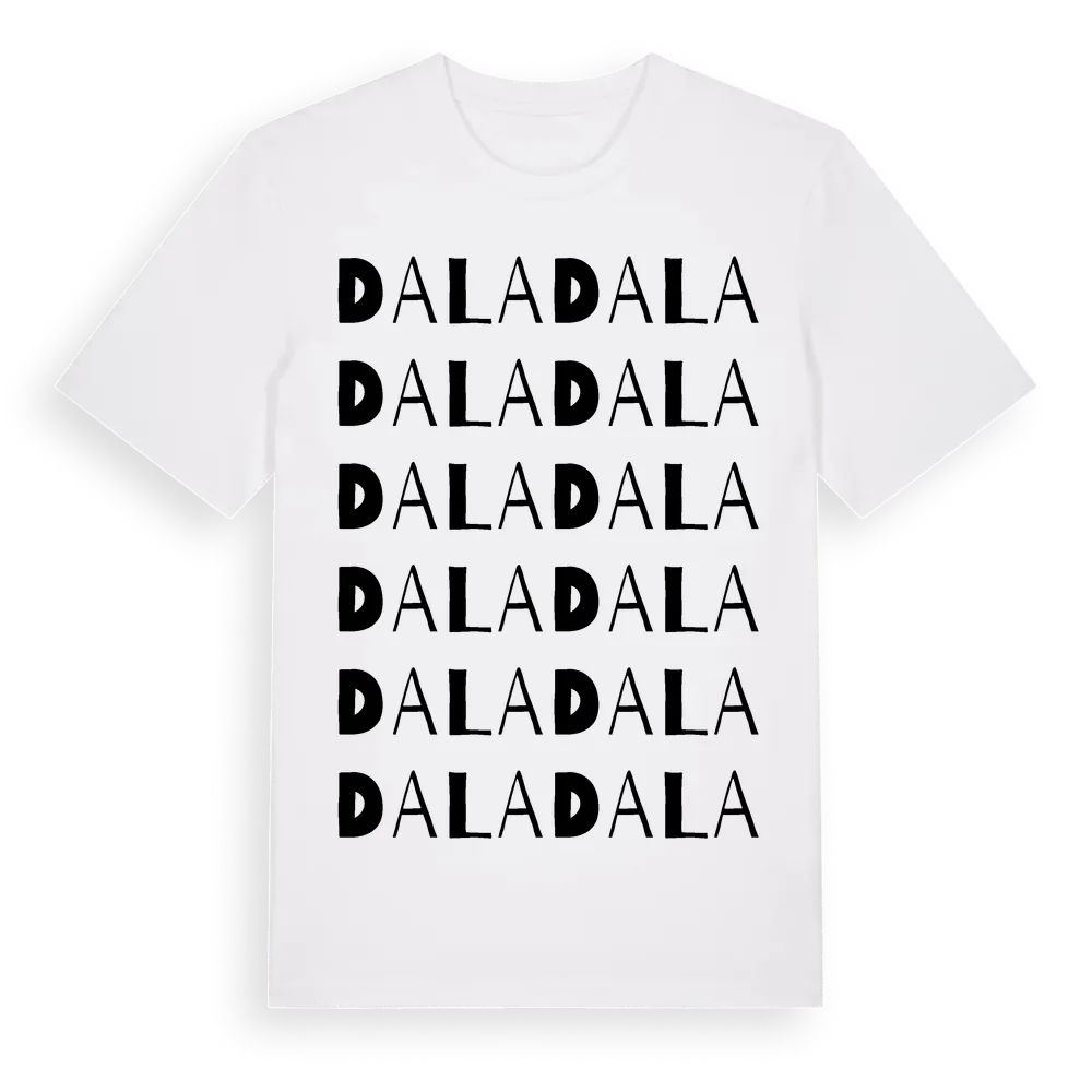 En ordlek byggd på Dalas namn. Subtilt och klurig – ett motiv som bara de som verkligen känner platsen fullt ut förstår. Premium bomull, unisex – från Dala i Östergötlands län.