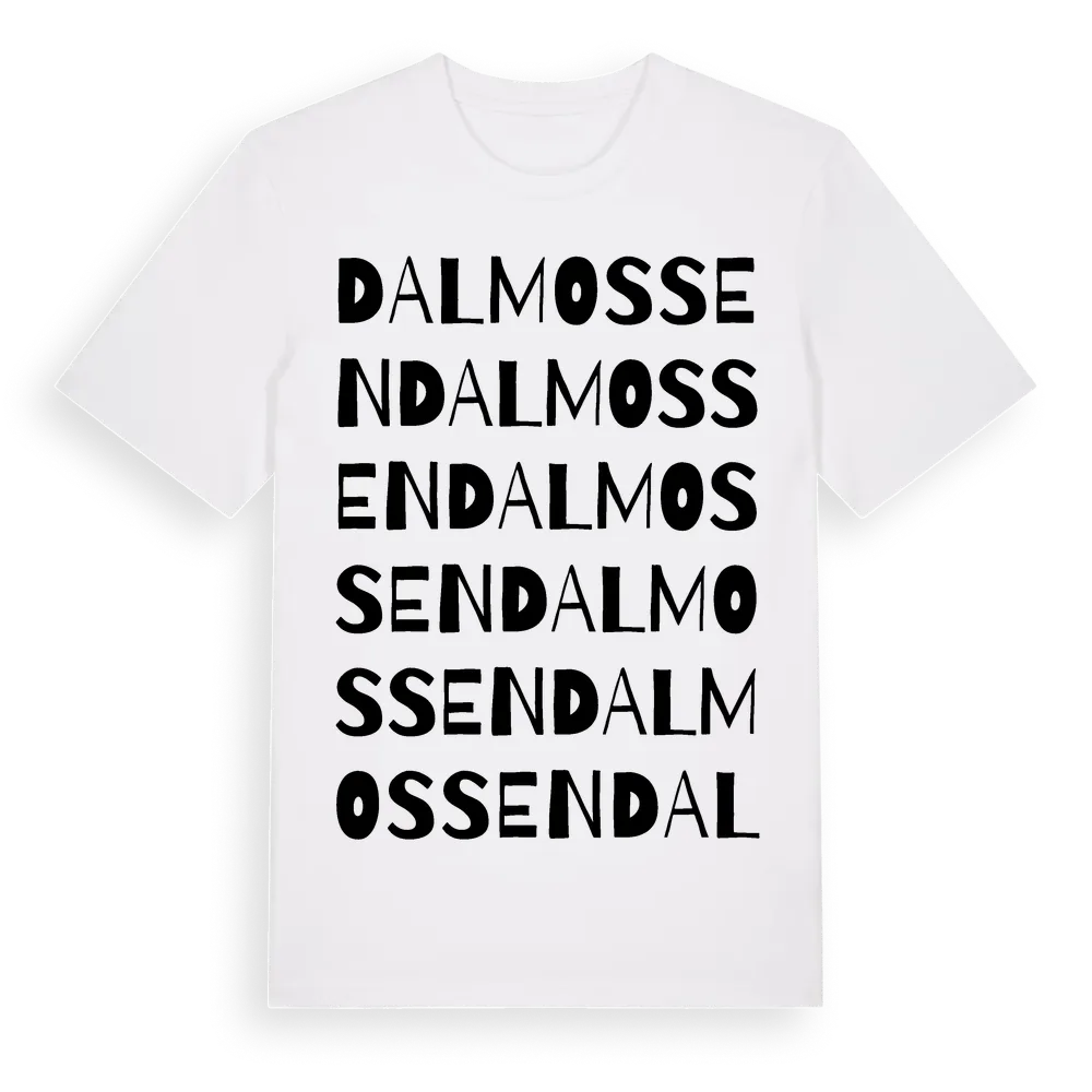 Dalmossen ordlek t-shirt är inspirerad av Dalmossen i Östergötlands län, Sverige. Tröjan är designad för dig som har en speciell koppling till platsen – oavsett om du bor här, har rötterna här eller bara älskar Dalmossen.