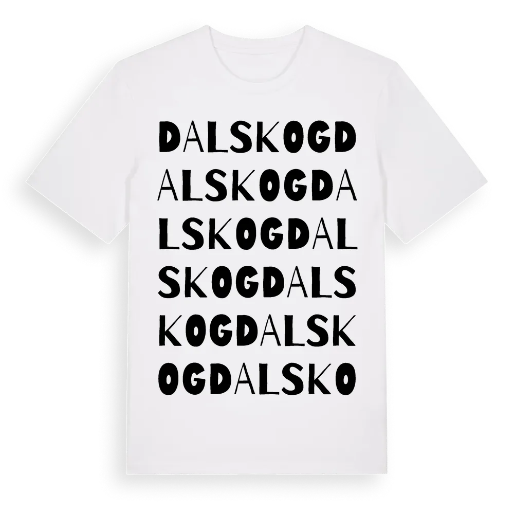 Dalskog ordlek t-shirt är inspirerad av Dalskog i Östergötlands län, Sverige. Tröjan är designad för dig som har en speciell koppling till platsen – oavsett om du bor här, har rötterna här eller bara älskar Dalskog.