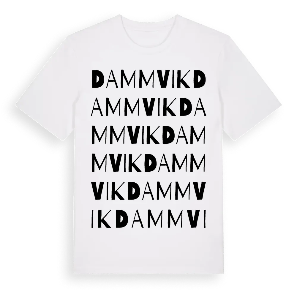 Dammvik ordlek t-shirt är inspirerad av Dammvik i Östergötlands län, Sverige. Tröjan är designad för dig som har en speciell koppling till platsen – oavsett om du bor här, har rötterna här eller bara älskar Dammvik.