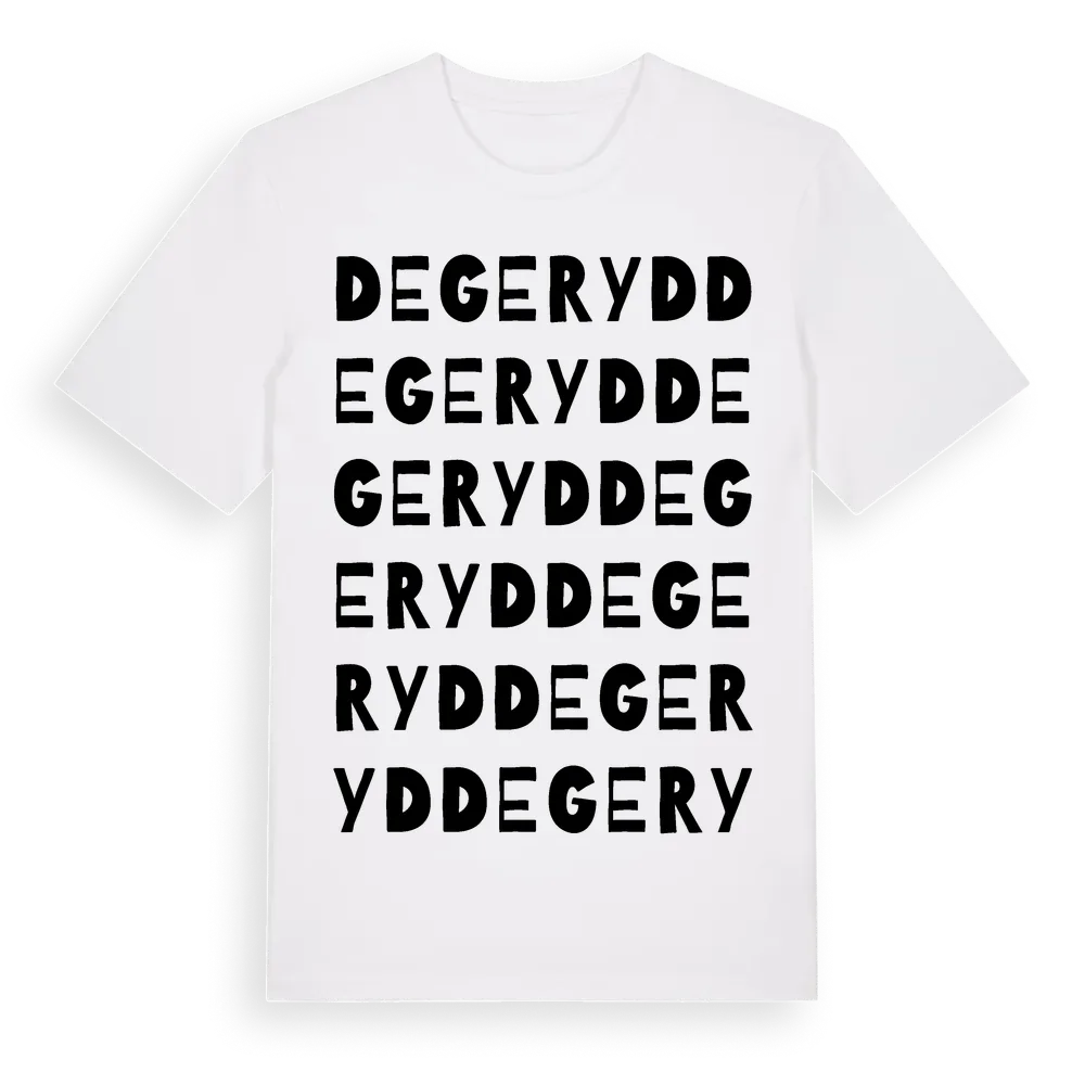 Degeryd ordlek t-shirt är inspirerad av byn Degeryd i Östergötlands län, Sverige. Tröjan är designad för dig som har en speciell koppling till platsen – oavsett om du bor här, har rötterna här eller bara älskar Degeryd.