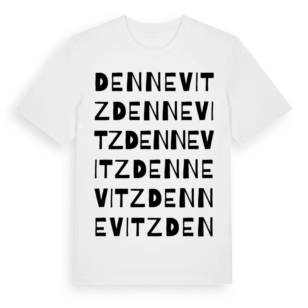 Dennevitz ordlek t-shirt är inspirerad av Dennevitz i Östergötlands län, Sverige. Tröjan är designad för dig som har en speciell koppling till platsen – oavsett om du bor här, har rötterna här eller bara älskar Dennevitz.