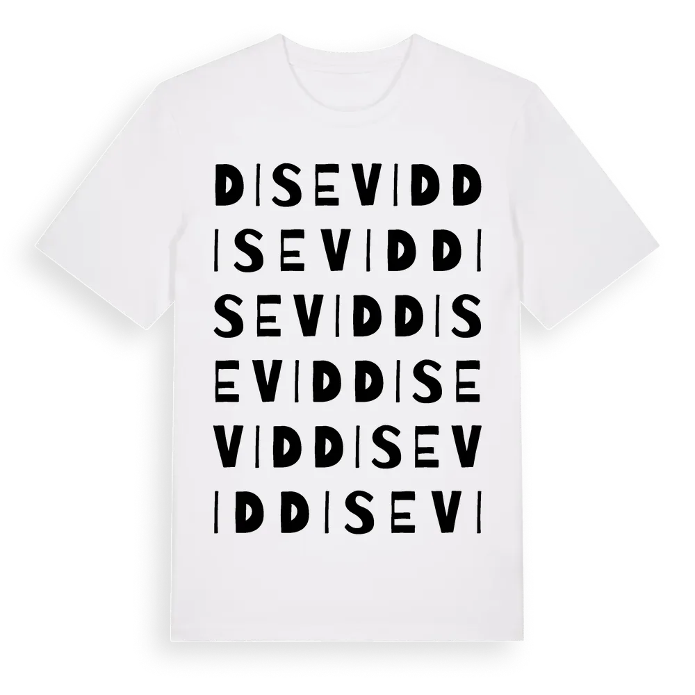 Disevid ordlek t-shirt är inspirerad av byn Disevid i Östergötlands län, Sverige. Tröjan är designad för dig som har en speciell koppling till platsen – oavsett om du bor här, har rötterna här eller bara älskar Disevid.