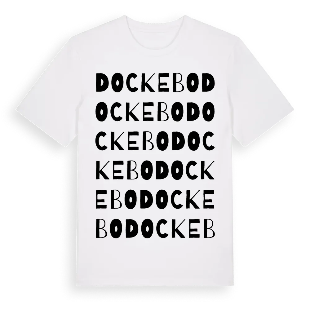 Dockebo ordlek t-shirt är inspirerad av byn Dockebo i Östergötlands län, Sverige. Tröjan är designad för dig som har en speciell koppling till platsen – oavsett om du bor här, har rötterna här eller bara älskar Dockebo.