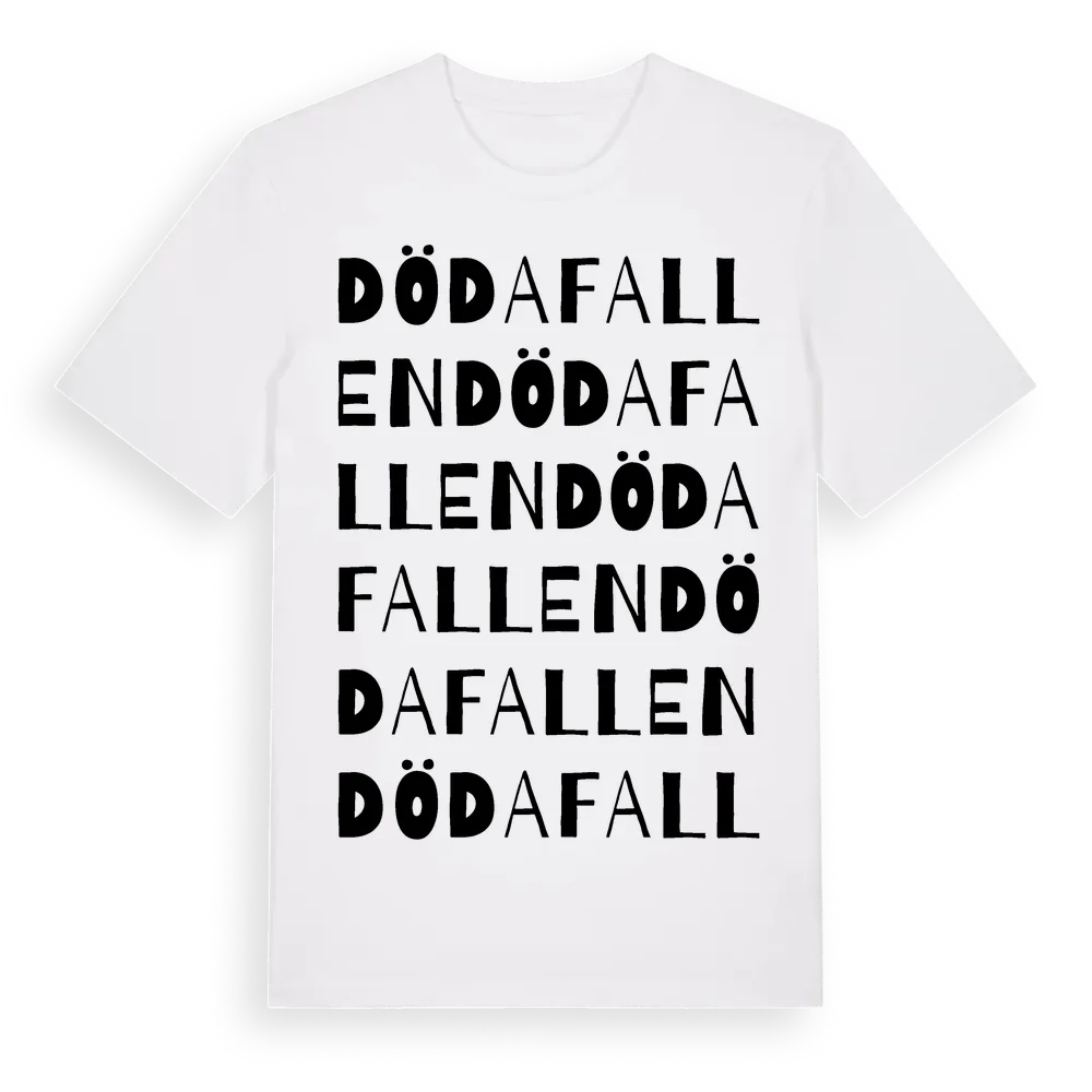 Döda Fallen ordlek t-shirt är inspirerad av Döda Fallen i Östergötlands län, Sverige. Tröjan är designad för dig som har en speciell koppling till platsen – oavsett om du bor här, har rötterna här eller bara älskar Döda Fallen.