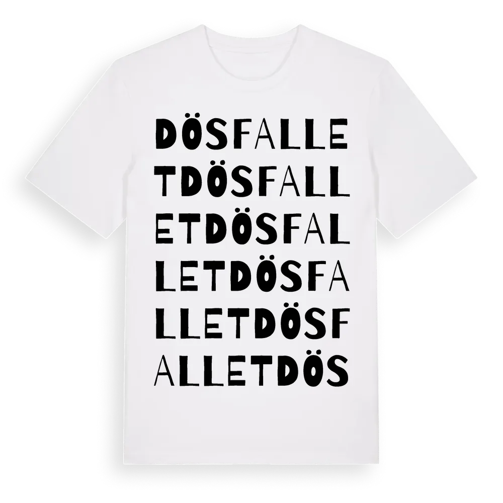 En ordlek byggd på Dösfallets namn. Subtilt och klurig – ett motiv som bara de som verkligen känner platsen fullt ut förstår. Premium bomull, unisex – från Dösfallet i Östergötlands län.