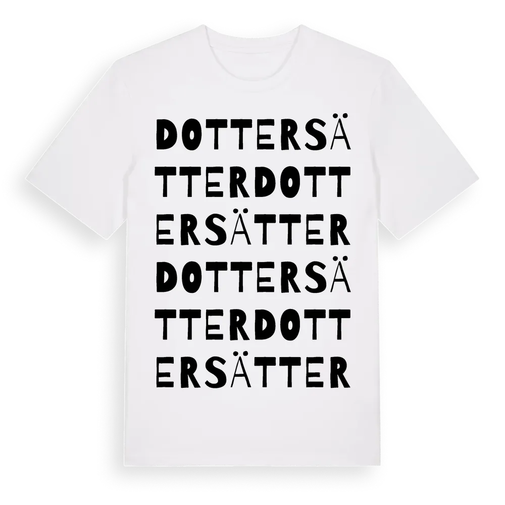 Dottersätter ordlek t-shirt är inspirerad av Dottersätter i Östergötlands län, Sverige. Tröjan är designad för dig som har en speciell koppling till platsen – oavsett om du bor här, har rötterna här eller bara älskar Dottersätter.