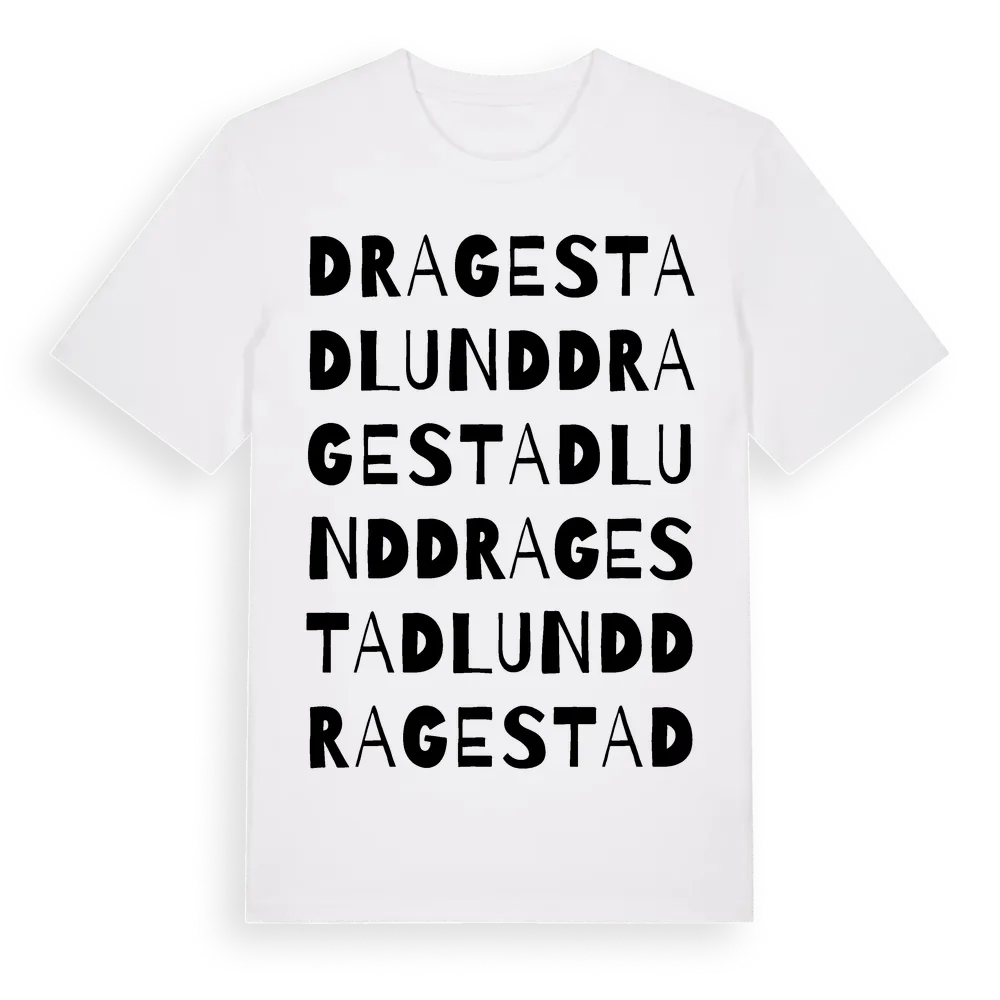 Dragestadlund ordlek t-shirt är inspirerad av Dragestadlund i Östergötlands län, Sverige. Tröjan är designad för dig som har en speciell koppling till platsen – oavsett om du bor här, har rötterna här eller bara älskar Dragestadlund.
