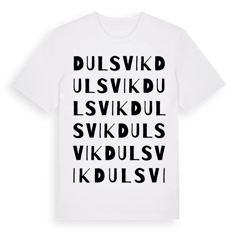 Dulsvik ordlek t-shirt är inspirerad av Dulsvik i Östergötlands län, Sverige. Tröjan är designad för dig som har en speciell koppling till platsen – oavsett om du bor här, har rötterna här eller bara älskar Dulsvik.