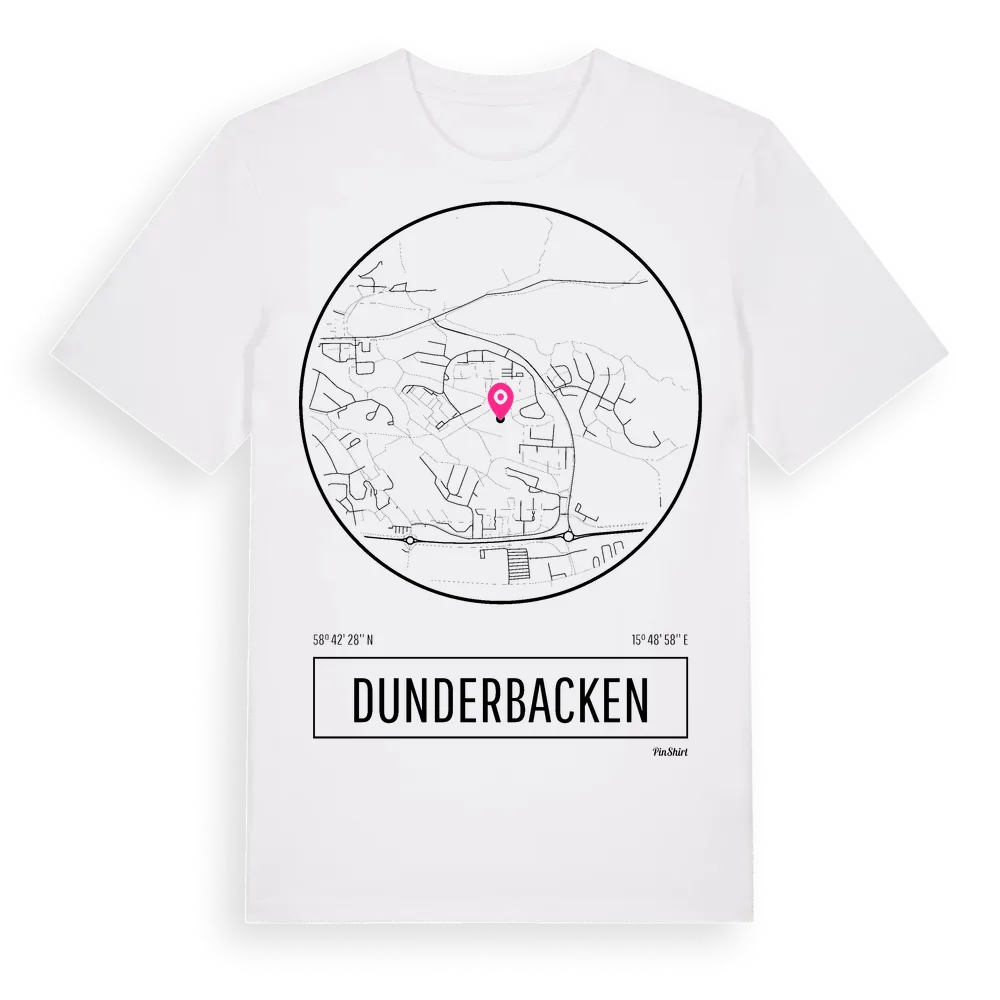 Dunderbacken t-shirt är inspirerad av stadsdelen Dunderbacken i Östergötlands län, Sverige. Tröjan är designad för dig som har en speciell koppling till platsen – oavsett om du bor här, har rötterna här eller bara älskar Dunderbacken.
