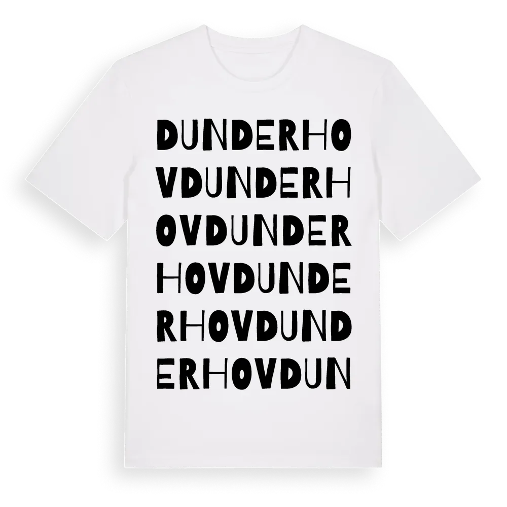 Dunderhov ordlek t-shirt är inspirerad av Dunderhov i Östergötlands län, Sverige. Tröjan är designad för dig som har en speciell koppling till platsen – oavsett om du bor här, har rötterna här eller bara älskar Dunderhov.