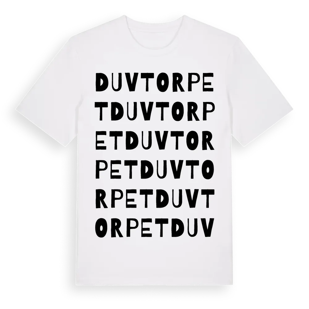 Duvtorpet ordlek t-shirt är inspirerad av Duvtorpet i Östergötlands län, Sverige. Tröjan är designad för dig som har en speciell koppling till platsen – oavsett om du bor här, har rötterna här eller bara älskar Duvtorpet.