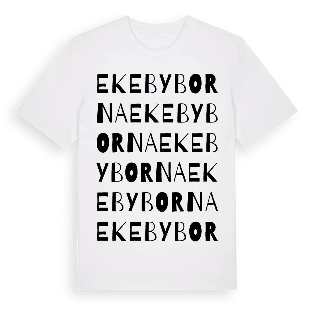 Ekebyborna ordlek t-shirt är inspirerad av byn Ekebyborna i Östergötlands län, Sverige. Tröjan är designad för dig som har en speciell koppling till platsen – oavsett om du bor här, har rötterna här eller bara älskar Ekebyborna.