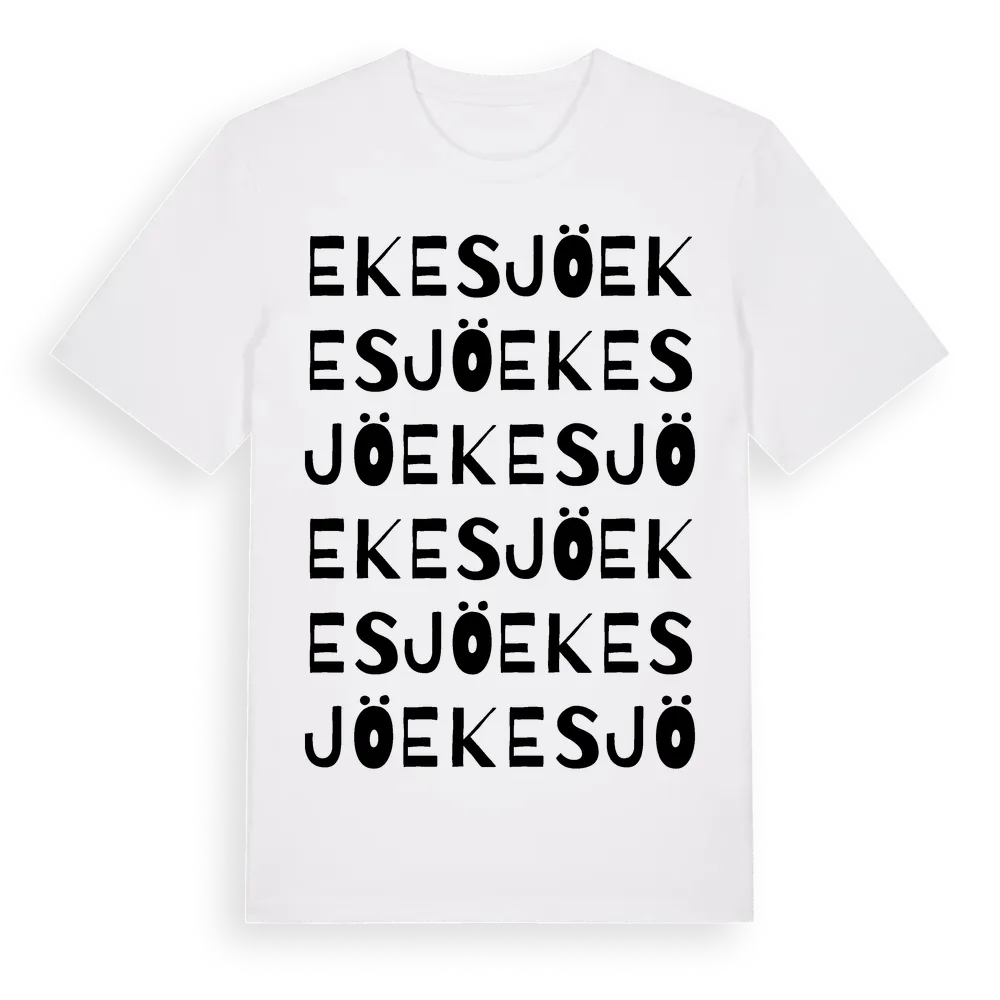 Ekesjö ordlek t-shirt är inspirerad av byn Ekesjö i Östergötlands län, Sverige. Tröjan är designad för dig som har en speciell koppling till platsen – oavsett om du bor här, har rötterna här eller bara älskar Ekesjö.