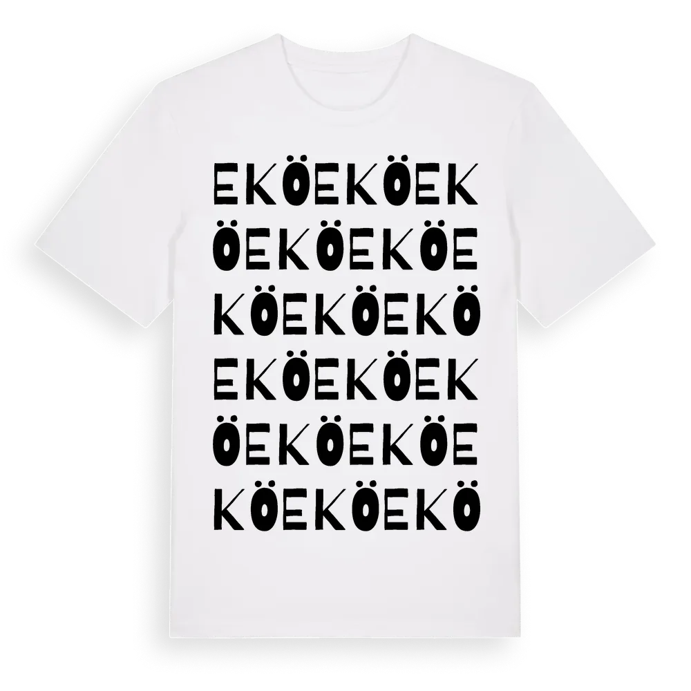 En ordlek byggd på Ekös namn. Subtilt och klurig – ett motiv som bara de som verkligen känner platsen fullt ut förstår. Premium bomull, unisex – från Ekö i Östergötlands län.