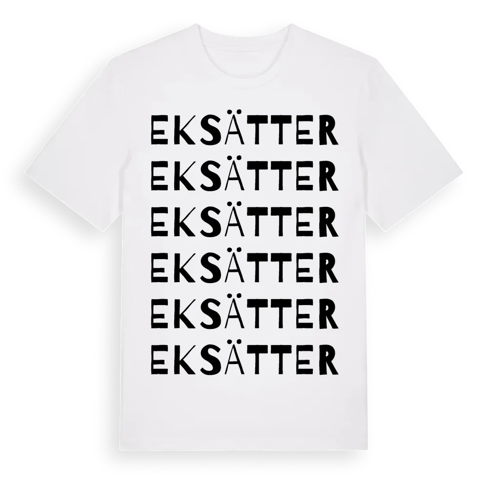 Eksätter ordlek t-shirt är inspirerad av Eksätter i Östergötlands län, Sverige. Tröjan är designad för dig som har en speciell koppling till platsen – oavsett om du bor här, har rötterna här eller bara älskar Eksätter.