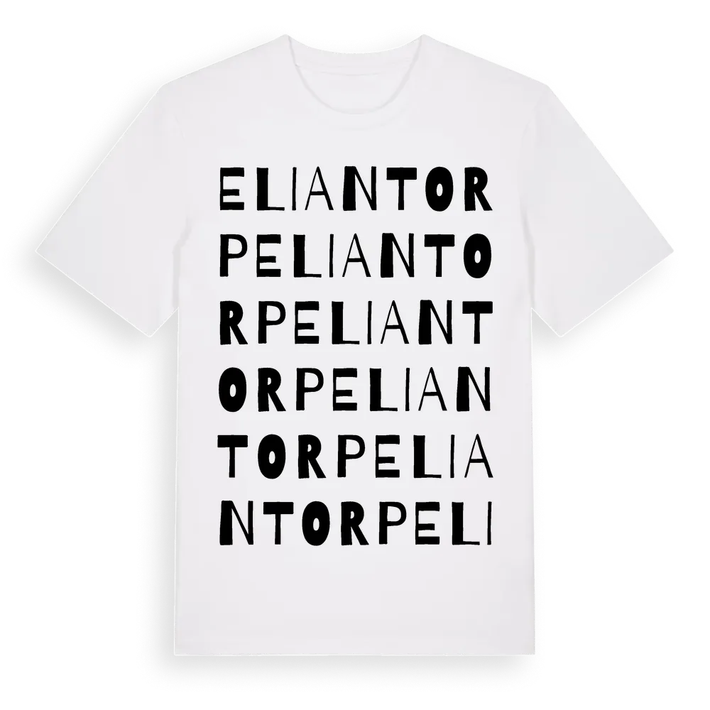 Eliantorp ordlek t-shirt är inspirerad av byn Eliantorp i Östergötlands län, Sverige. Tröjan är designad för dig som har en speciell koppling till platsen – oavsett om du bor här, har rötterna här eller bara älskar Eliantorp.
