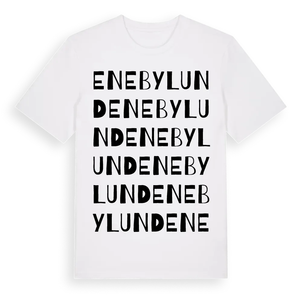 Enebylund ordlek t-shirt är inspirerad av Enebylund i Östergötlands län, Sverige. Tröjan är designad för dig som har en speciell koppling till platsen – oavsett om du bor här, har rötterna här eller bara älskar Enebylund.