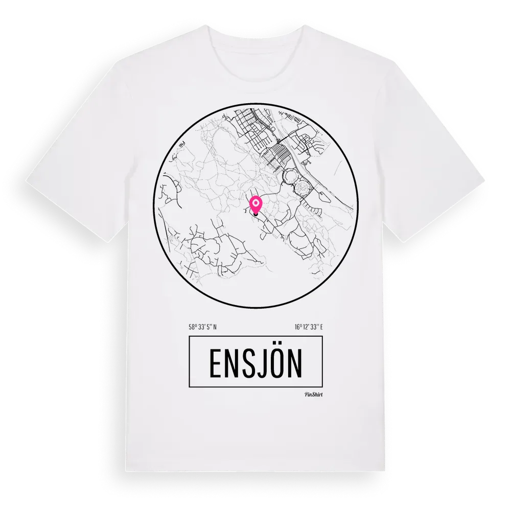 Ett rent, runt tryck med Ensjöns namn. Minimalistiskt och stilrent – perfekt för den som känner platsen utan att skrika det. Premium bomull, unisex – från stadsdelen Ensjön i Östergötlands län.