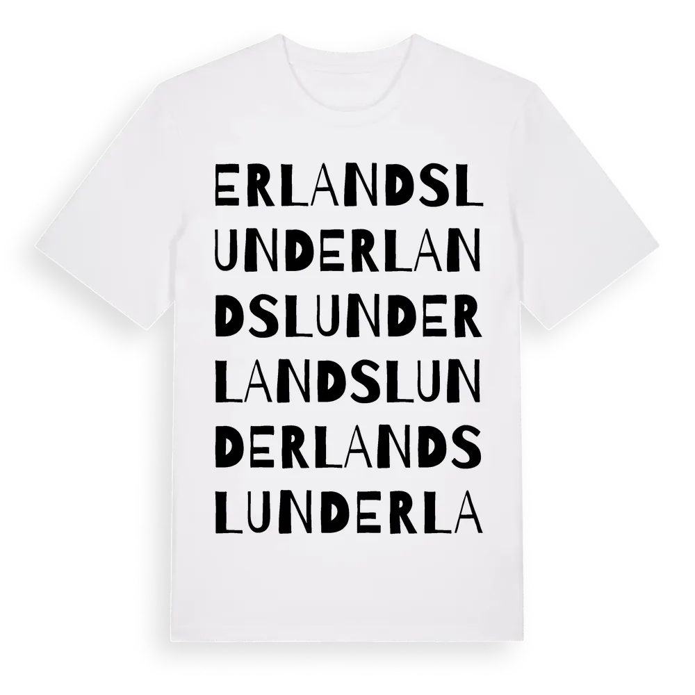 Erlandslund ordlek t-shirt är inspirerad av Erlandslund i Östergötlands län, Sverige. Tröjan är designad för dig som har en speciell koppling till platsen – oavsett om du bor här, har rötterna här eller bara älskar Erlandslund.