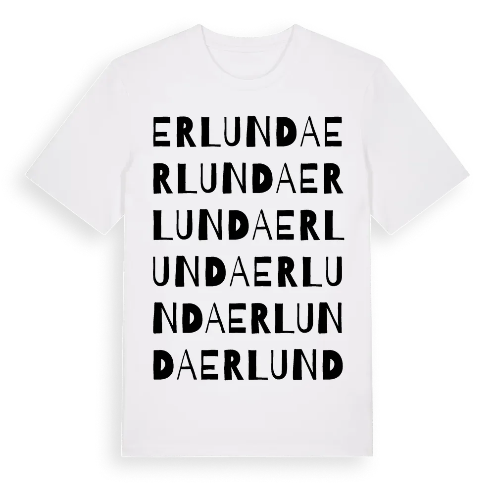 Erlunda ordlek t-shirt är inspirerad av byn Erlunda i Östergötlands län, Sverige. Tröjan är designad för dig som har en speciell koppling till platsen – oavsett om du bor här, har rötterna här eller bara älskar Erlunda.