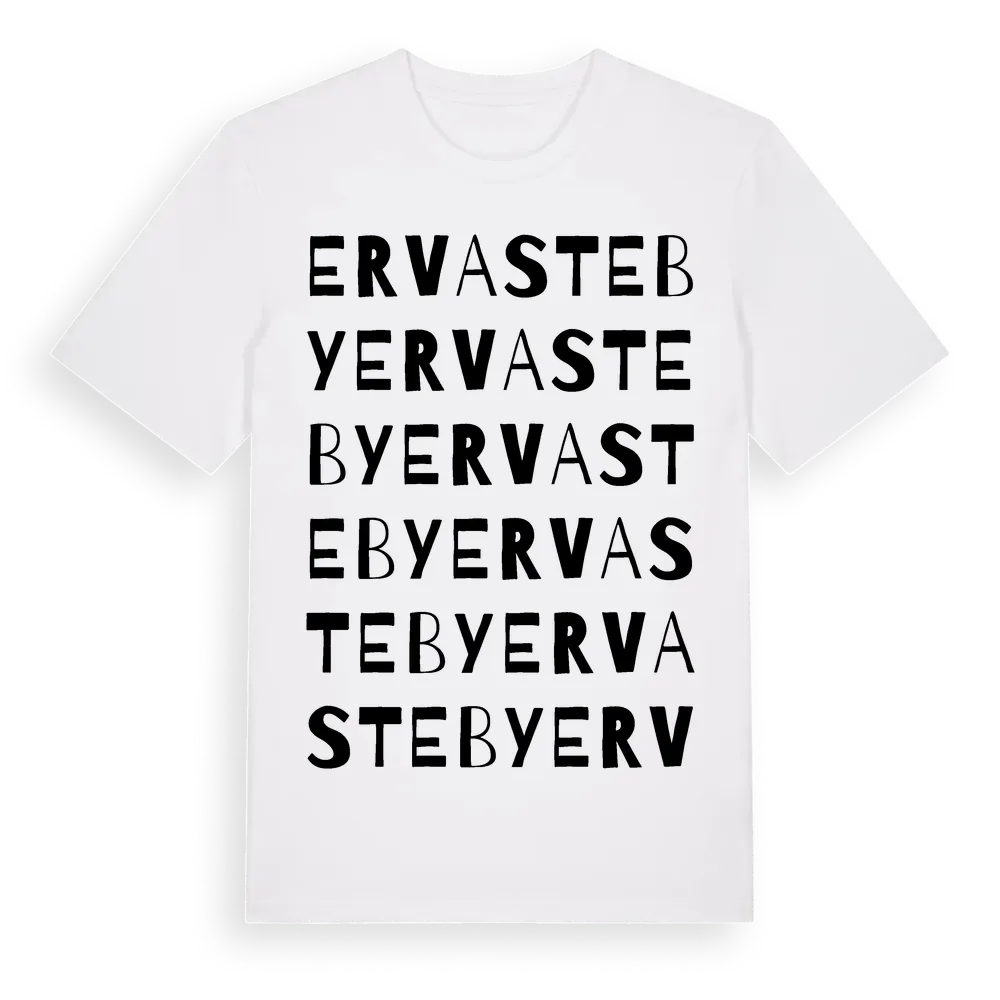 Ervasteby ordlek t-shirt är inspirerad av byn Ervasteby i Östergötlands län, Sverige. Tröjan är designad för dig som har en speciell koppling till platsen – oavsett om du bor här, har rötterna här eller bara älskar Ervasteby.