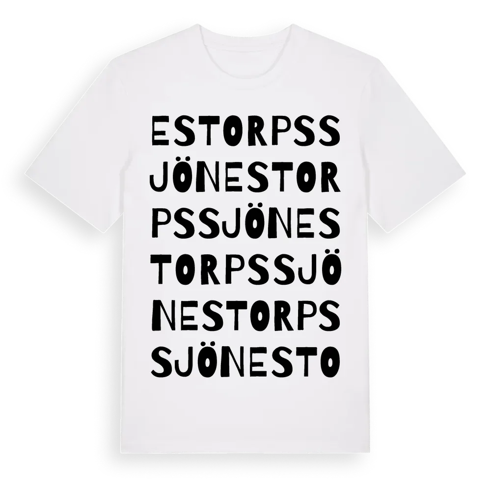 Estorpssjön ordlek t-shirt är inspirerad av Estorpssjön i Östergötlands län, Sverige. Tröjan är designad för dig som har en speciell koppling till platsen – oavsett om du bor här, har rötterna här eller bara älskar Estorpssjön.