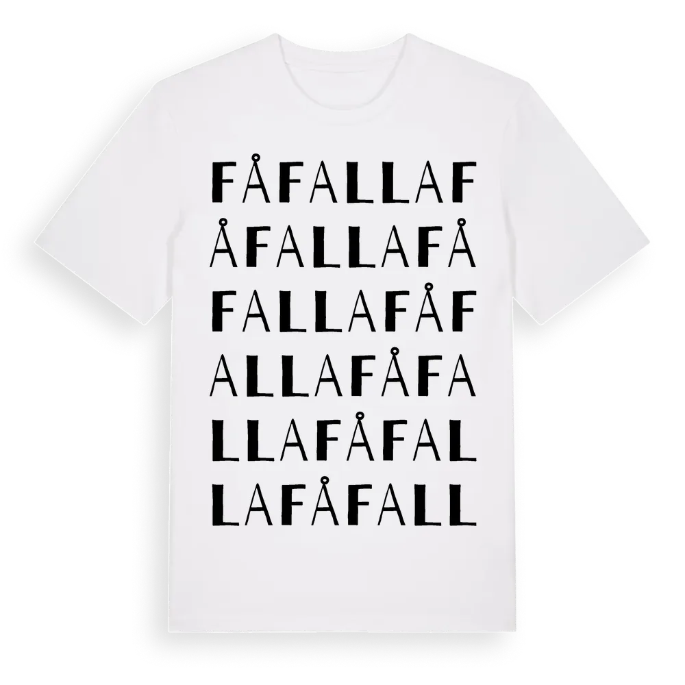 Fåfalla ordlek t-shirt är inspirerad av byn Fåfalla i Östergötlands län, Sverige. Tröjan är designad för dig som har en speciell koppling till platsen – oavsett om du bor här, har rötterna här eller bara älskar Fåfalla.