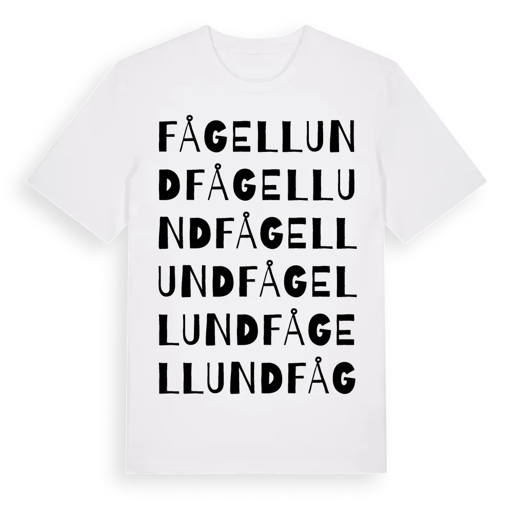 Fågellund ordlek t-shirt är inspirerad av Fågellund i Östergötlands län, Sverige. Tröjan är designad för dig som har en speciell koppling till platsen – oavsett om du bor här, har rötterna här eller bara älskar Fågellund.
