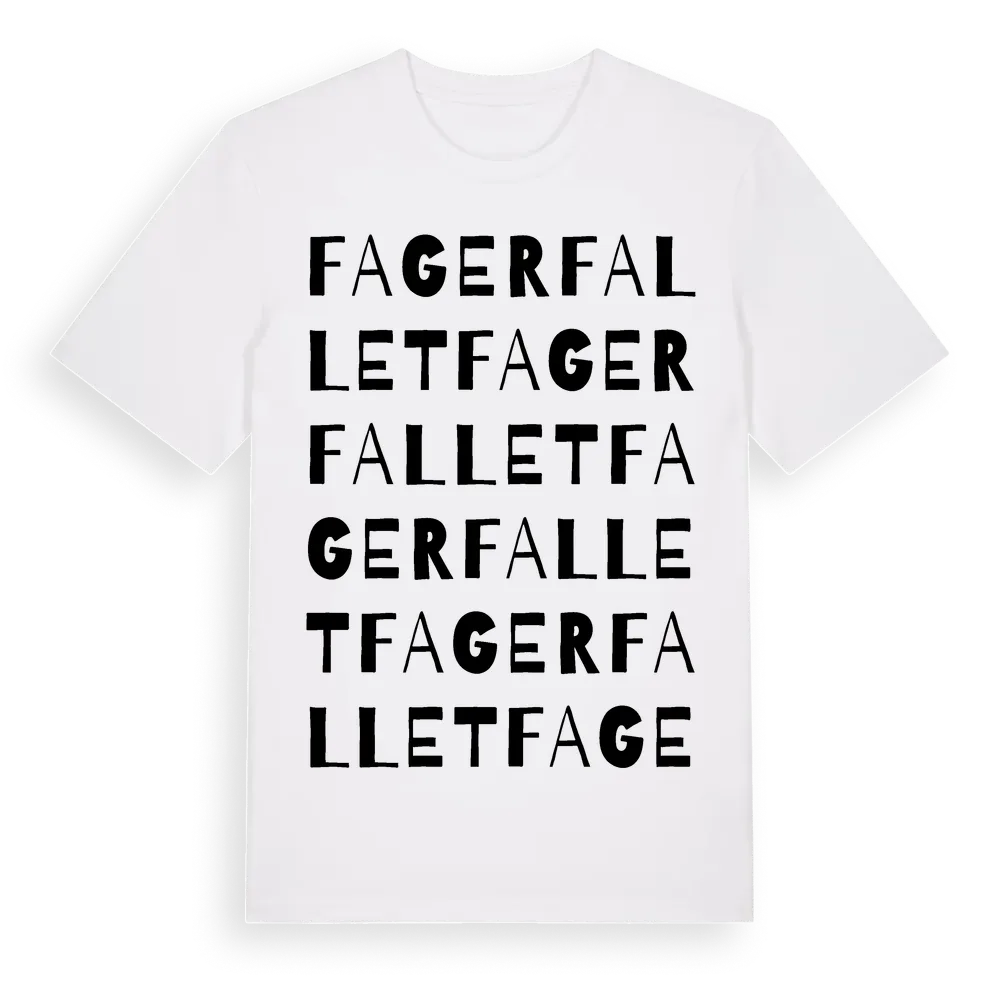 Fagerfallet ordlek t-shirt är inspirerad av byn Fagerfallet i Östergötlands län, Sverige. Tröjan är designad för dig som har en speciell koppling till platsen – oavsett om du bor här, har rötterna här eller bara älskar Fagerfallet.