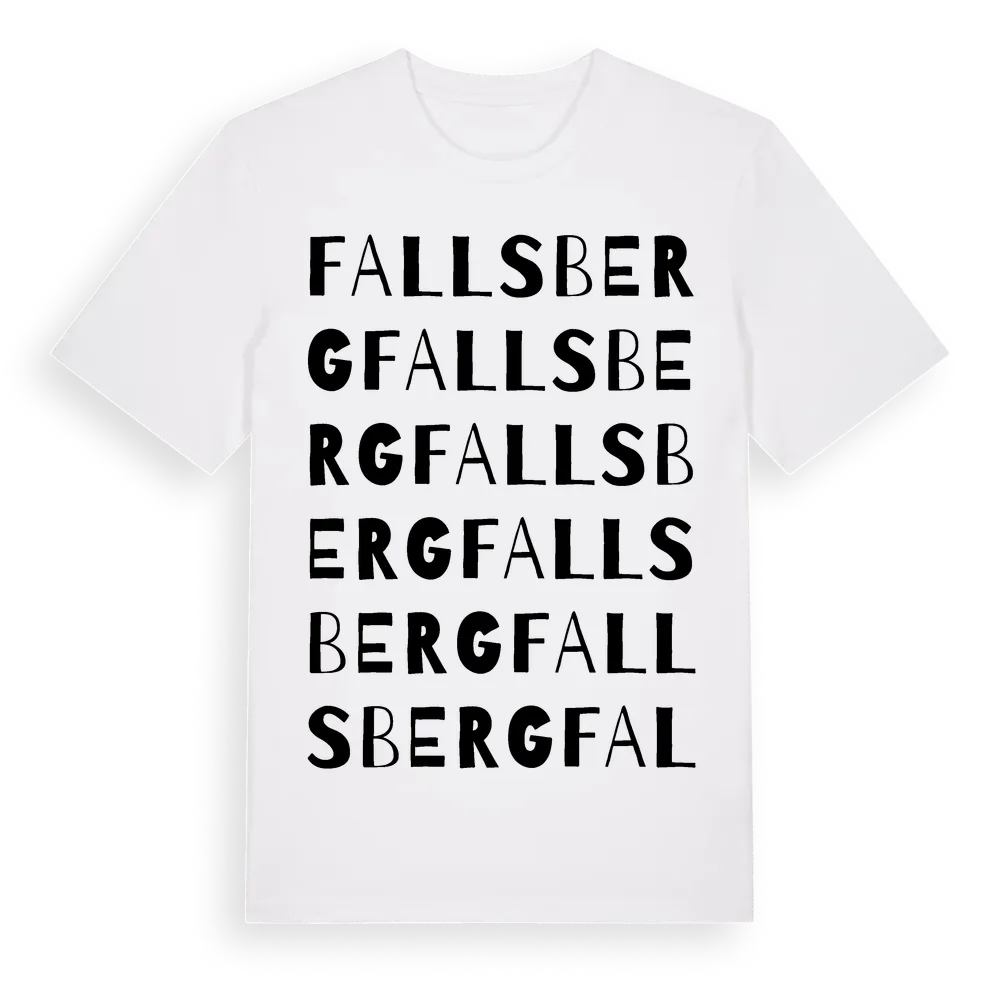 Fallsberg ordlek t-shirt är inspirerad av Fallsberg i Östergötlands län, Sverige. Tröjan är designad för dig som har en speciell koppling till platsen – oavsett om du bor här, har rötterna här eller bara älskar Fallsberg.