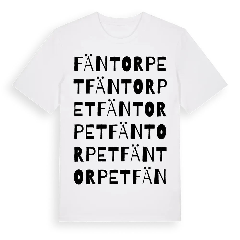 Fäntorpet ordlek t-shirt är inspirerad av Fäntorpet i Östergötlands län, Sverige. Tröjan är designad för dig som har en speciell koppling till platsen – oavsett om du bor här, har rötterna här eller bara älskar Fäntorpet.
