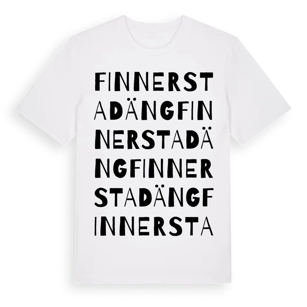 Finnerstad Äng ordlek t-shirt är inspirerad av byn Finnerstad Äng i Östergötlands län, Sverige. Tröjan är designad för dig som har en speciell koppling till platsen – oavsett om du bor här, har rötterna här eller bara älskar Finnerstad Äng.