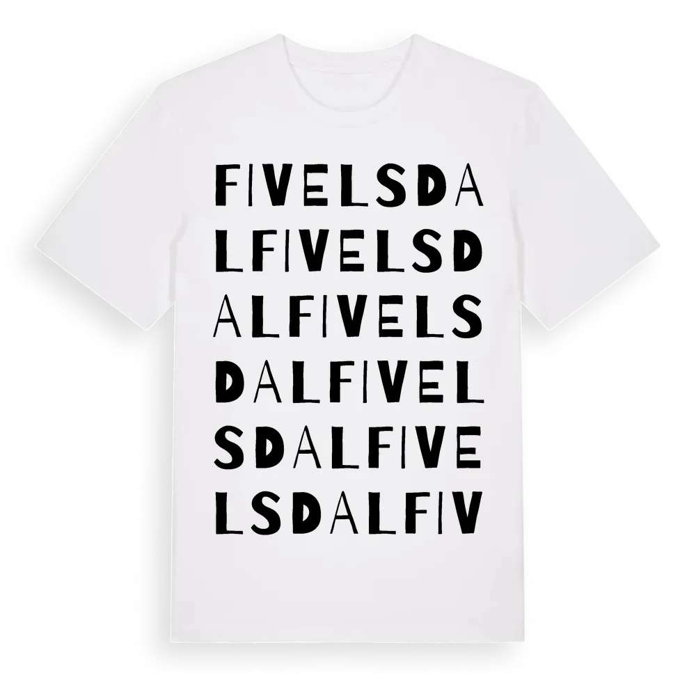 Fivelsdal ordlek t-shirt är inspirerad av byn Fivelsdal i Östergötlands län, Sverige. Tröjan är designad för dig som har en speciell koppling till platsen – oavsett om du bor här, har rötterna här eller bara älskar Fivelsdal.