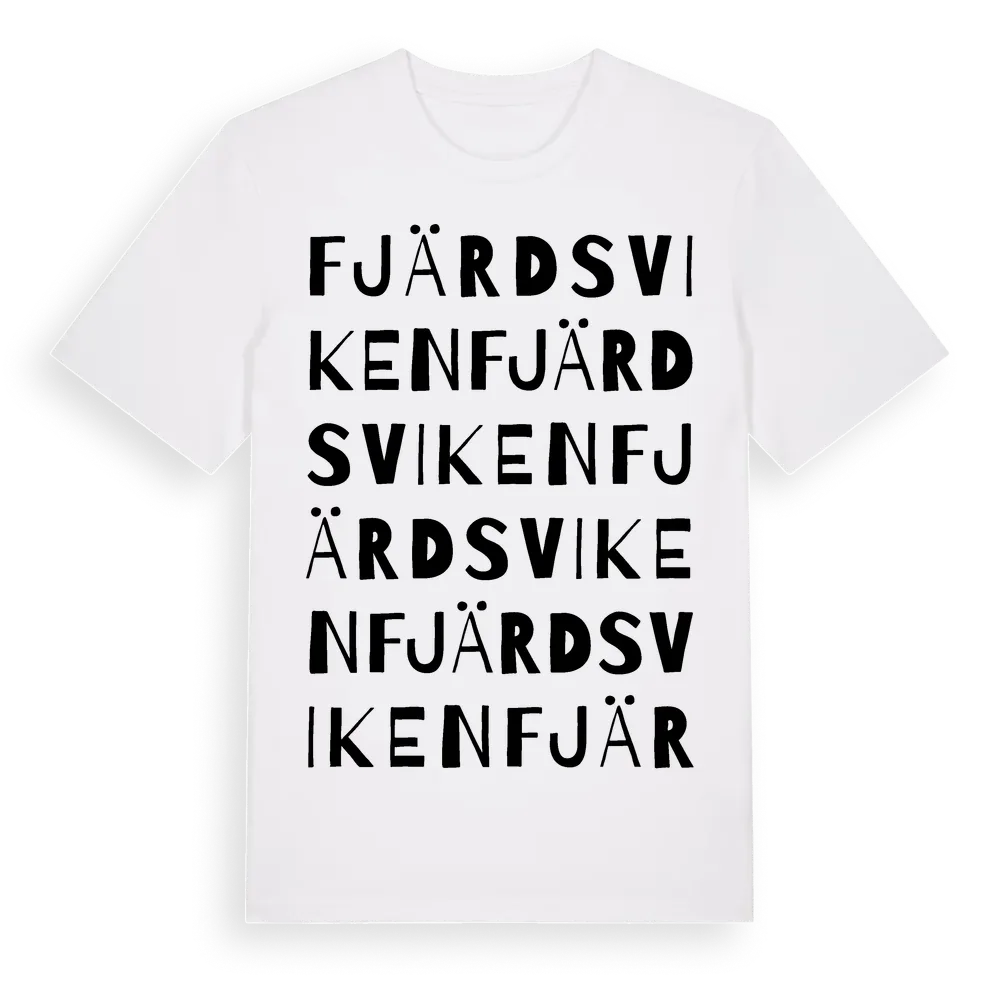 Fjärdsviken ordlek t-shirt är inspirerad av Fjärdsviken i Östergötlands län, Sverige. Tröjan är designad för dig som har en speciell koppling till platsen – oavsett om du bor här, har rötterna här eller bara älskar Fjärdsviken.