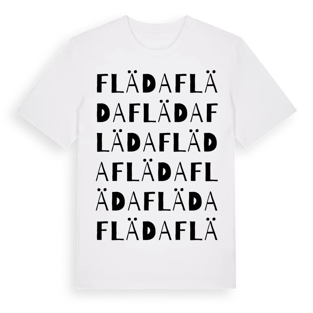 En ordlek byggd på Flädas namn. Subtilt och klurig – ett motiv som bara de som verkligen känner platsen fullt ut förstår. Premium bomull, unisex – från byn Fläda i Östergötlands län.
