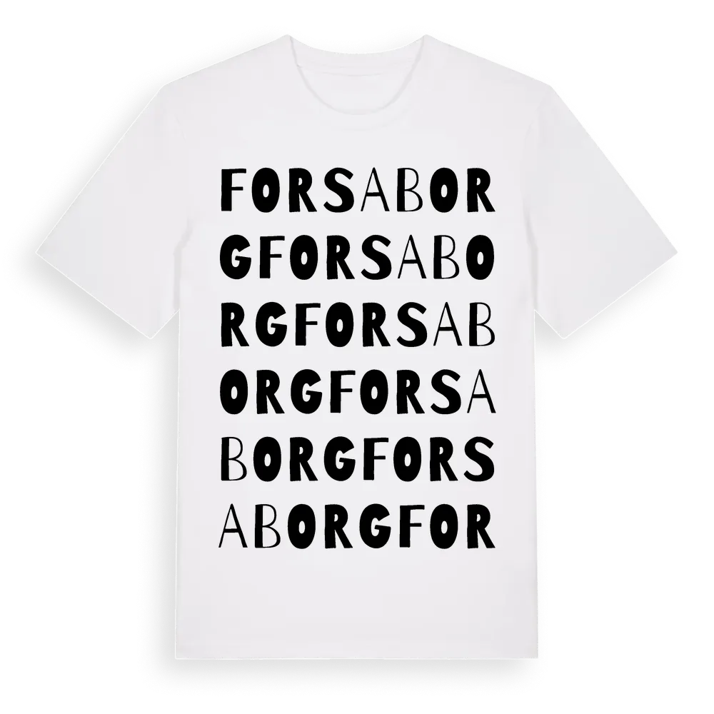 Forsaborg ordlek t-shirt är inspirerad av Forsaborg i Östergötlands län, Sverige. Tröjan är designad för dig som har en speciell koppling till platsen – oavsett om du bor här, har rötterna här eller bara älskar Forsaborg.