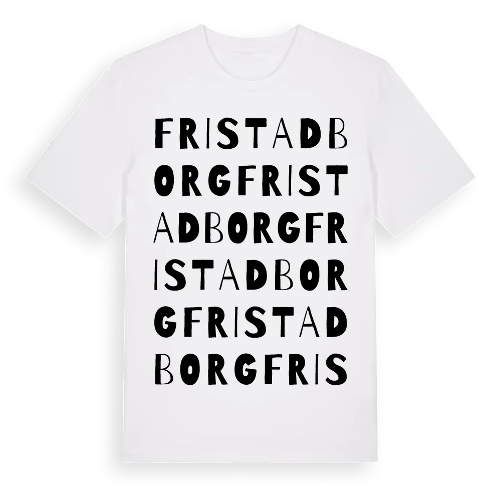 Fristadborg ordlek t-shirt är inspirerad av Fristadborg i Östergötlands län, Sverige. Tröjan är designad för dig som har en speciell koppling till platsen – oavsett om du bor här, har rötterna här eller bara älskar Fristadborg.