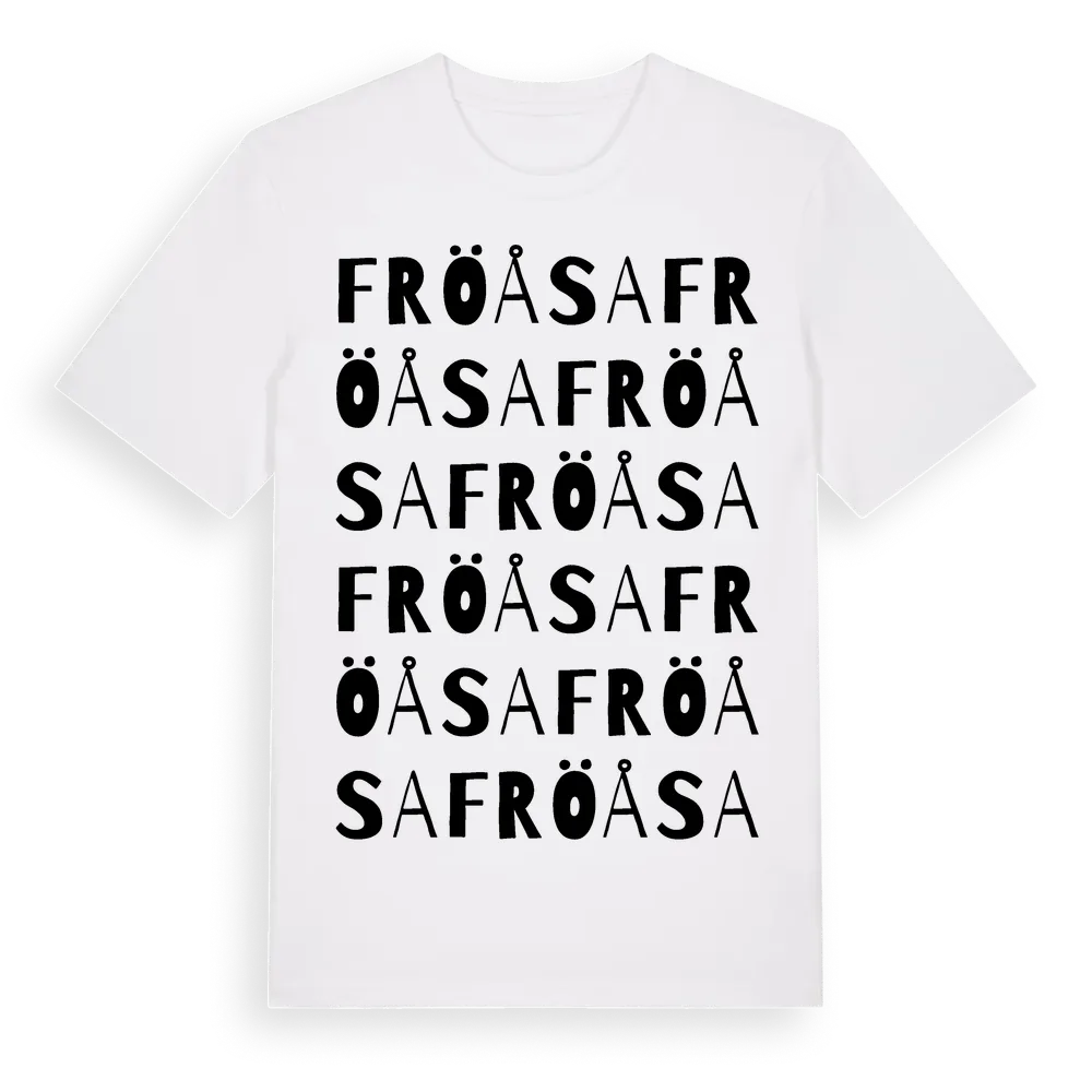 Fröåsa ordlek t-shirt är inspirerad av byn Fröåsa i Östergötlands län, Sverige. Tröjan är designad för dig som har en speciell koppling till platsen – oavsett om du bor här, har rötterna här eller bara älskar Fröåsa.