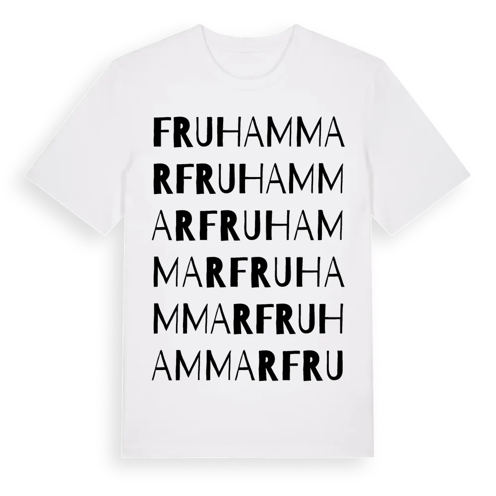 Fruhammar ordlek t-shirt är inspirerad av Fruhammar i Östergötlands län, Sverige. Tröjan är designad för dig som har en speciell koppling till platsen – oavsett om du bor här, har rötterna här eller bara älskar Fruhammar.