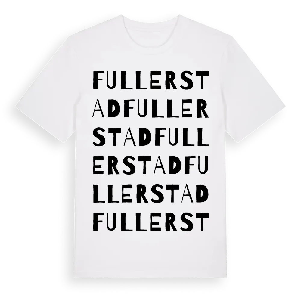 Fullerstad ordlek t-shirt är inspirerad av Fullerstad i Östergötlands län, Sverige. Tröjan är designad för dig som har en speciell koppling till platsen – oavsett om du bor här, har rötterna här eller bara älskar Fullerstad.