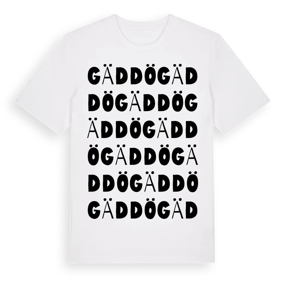 Gäddö ordlek t-shirt är inspirerad av Gäddö i Östergötlands län, Sverige. Tröjan är designad för dig som har en speciell koppling till platsen – oavsett om du bor här, har rötterna här eller bara älskar Gäddö.