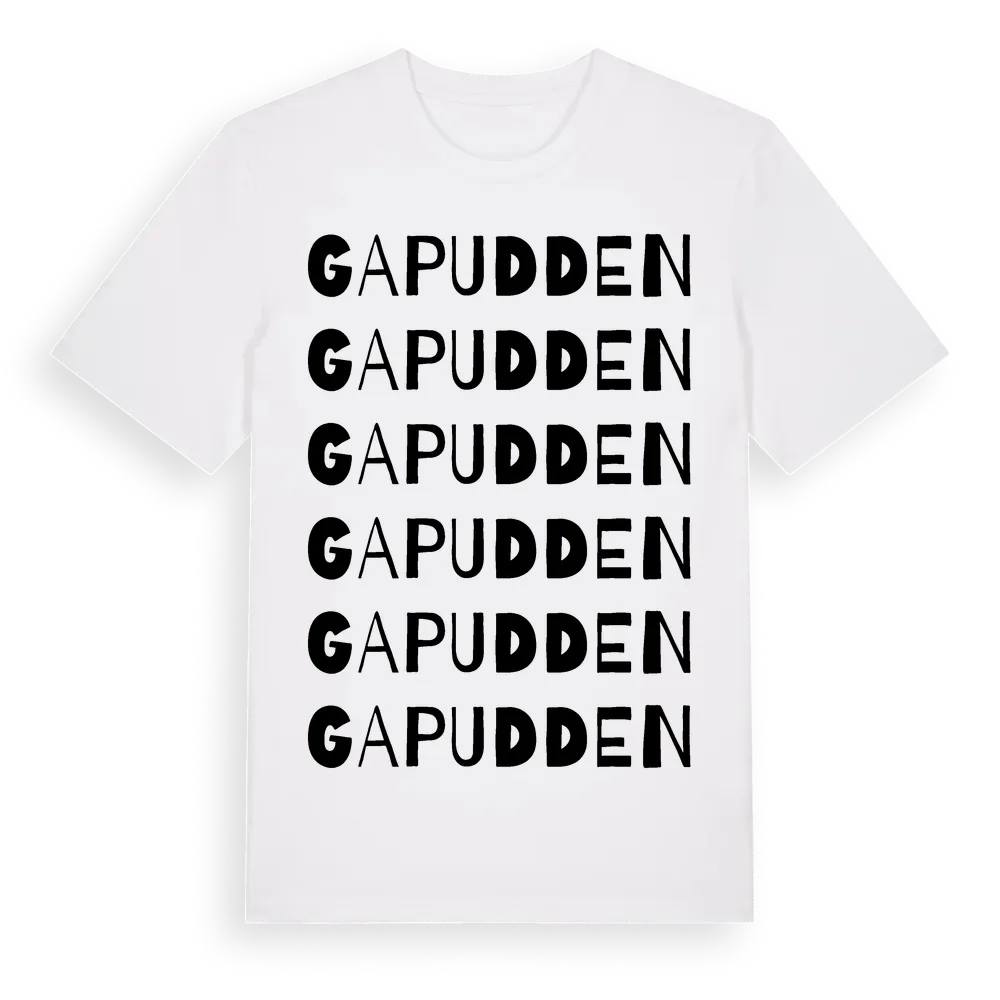 Gapudden ordlek t-shirt är inspirerad av Gapudden i Östergötlands län, Sverige. Tröjan är designad för dig som har en speciell koppling till platsen – oavsett om du bor här, har rötterna här eller bara älskar Gapudden.