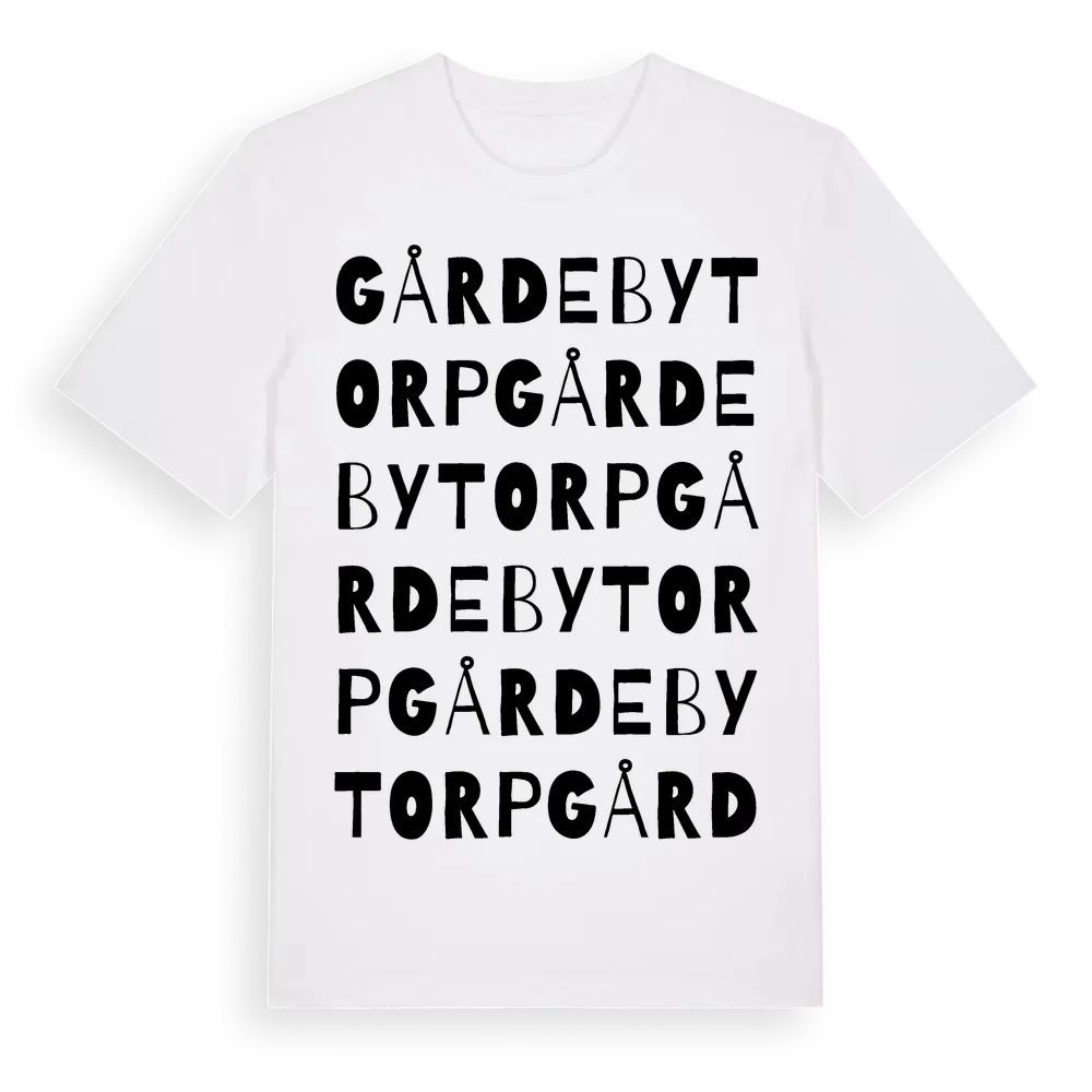 Gårdebytorp ordlek t-shirt är inspirerad av Gårdebytorp i Östergötlands län, Sverige. Tröjan är designad för dig som har en speciell koppling till platsen – oavsett om du bor här, har rötterna här eller bara älskar Gårdebytorp.